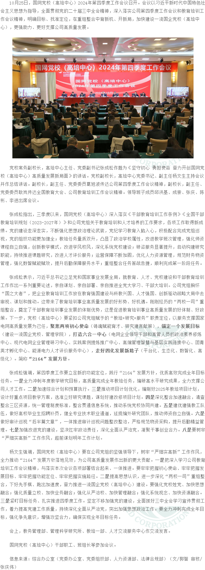 國網(wǎng)黨校(高培中心)召開2024年第四季度工作會(huì)議